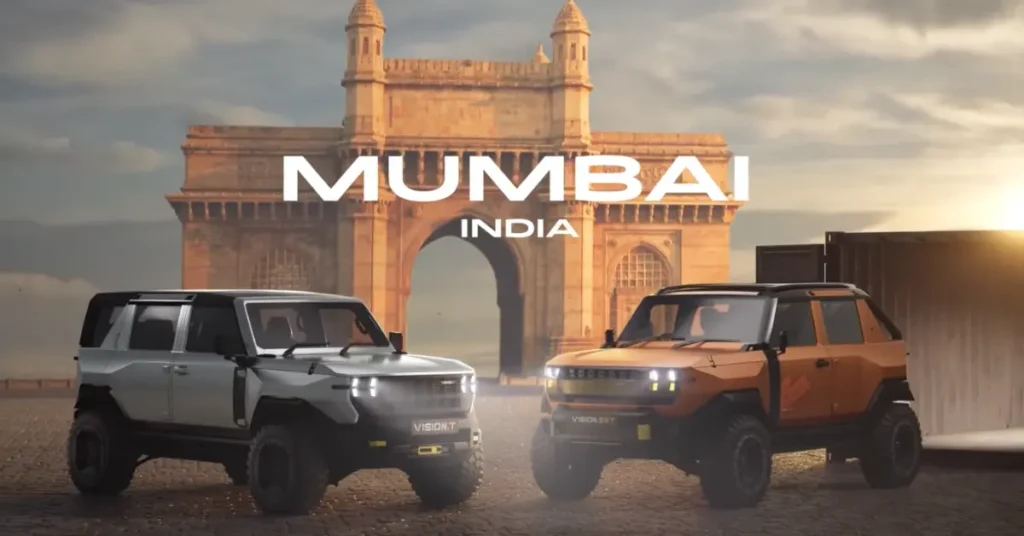 विजन टी थार का अपग्रेडेड वर्जन है। 2,665 मिमी व्हीलबेस, 10.3 मीटर टर्निंग रेडियस, स्प्लिट ग्रिल, स्क्वैरिश एलईडी हेडलैंप्स और टेलगेट स्पेयर टायर है। इंटीरियर में डिजिटल क्लस्टर, पोर्ट्रेट टचस्क्रीन और सनरूफ है। यह इलेक्ट्रिक-ओनली (एलएफपी बैटरी) होगा। लॉन्च: 2027।